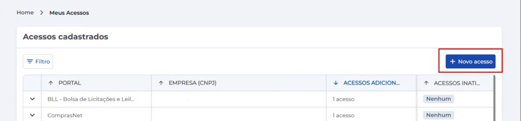 Para realizarmos qualquer tipo de ação para determinado portal precisamos que o acesso ao mesmo seja cadastrado na plataforma, neste artigo mostraremos o passa a passo para cadastrar um acesso: