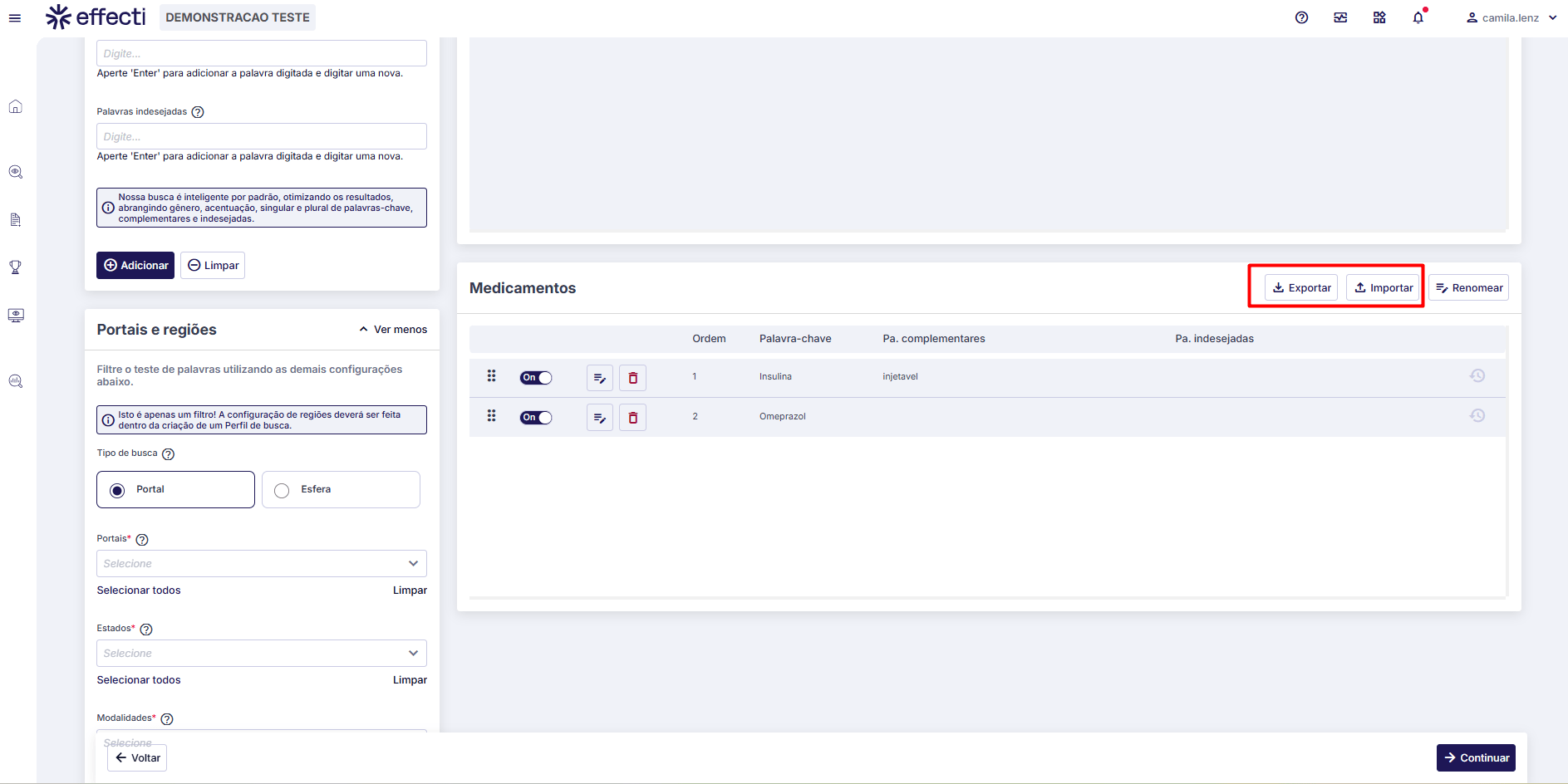 Observação: Não é recomendado cadastrar palavras-chave de forma composta, exemplo: Medicamento Hospitalar, caso queira adicionar mais uma palavra, cadastrar como palavra complementar.