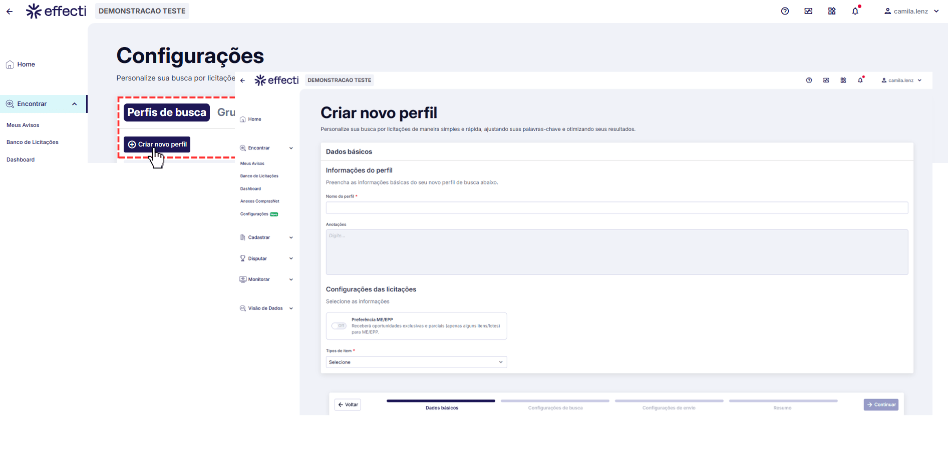 Preferência por licitações ME/EPP: marque se deseja receber apenas licitações voltadas a Microempresas ou Empresas de Pequeno Porte.