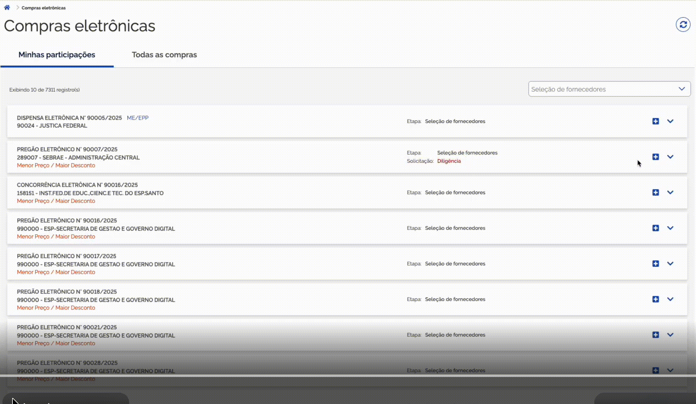 - Mensagens por fornecedor: As diligências são específicas por CNPJ. Se uma licitação for removida e adicionada novamente à plataforma, as diligências encerradas não serão reapresentadas.
