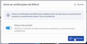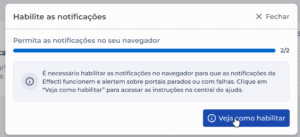 Quando apenas a plataforma tiver sem notificação, aparecerá a seguinte modal. Basta habilitar e clicar em confirmar